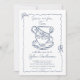 Elevem sua celebração de chá de fraldas com nosso doce Chá com a mãe para ser convidada. Apresentando um charmoso design azul e branco, este convite apresenta xícaras de chá elegantemente empilhadas adornadas com uma letra manuscrita branca, todas moldadas por uma delicada borda de coquete desenhada à mão. Perfeitamente desenhado para dar um tom delicioso para o seu encontro, este convite não só transmite a alegria da ocasião como também adiciona um toque de sofisticação ao seu evento. Convide seus convidados para compartilhar neste momento especial com estilo e graça.