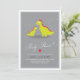 Personalize este Convite para Chá de fraldas Moderno Na moda com Cinza apresentando uma imagem original de dois dinossauros verdes e bonitos, um maior e outro menor. À volta deles estão a chutar corações delicados. Este convite é neutro e é adequado para um bebê ou uma menina. Há também uma versão amarela, verde e laranja azul deste design disponível nos links abaixo.