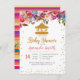 Chá de fraldas Carousel Horse convite com um belo poço de ouro floral e de ouro.