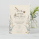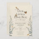 Este elegante convite de chá de fraldas neutro por gênero apresenta insetos de vintagem em um fundo antigo de papel com borboletas e libélula. Este convite para o chá de fraldas do Little Love tem código QR para registro da futura mãe no verso. Simplesmente personalize o roteiro para suas necessidades com este doce design.