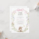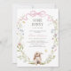 Celebrar a futura mãe com este convite de chá de fraldas branco com uma ilustração aquática de um belo coelhinho com uma coroa aquática de flores silvestres com flores silvestres minúsculas e pastéis e um arco rosa.