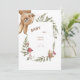 Convite para chás de fraldas. Moldura de folhagem e coelho. Querida!
