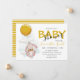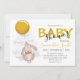 Chá de fraldas, um coelho bebê flutuante de balão personalizado para um bebê. Crie e personalize rapidamente o seu convite amarelo e branco ao Chá de fraldas. Clique no botão "Personalizar!" para alterar o tamanho do texto, a cor do texto, o estilo da fonte e muito mais!