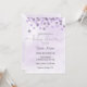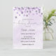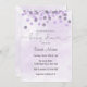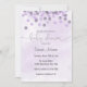 Convite para chá de fraldas com design de confetti lavanda roxo e fundo de aquarela roxo claro.