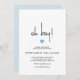Um convite moderno minimalista ao chá. Este cartão tem um design de caligrafia limpo e fresco que se adapta aos futuros pais. Com o seu lindo motif azul, é perfeito para um cartão de anúncio de um bebê ou para receber uma festa de chá honrando um novo pai. Uma aparência limpa e desajeitada com fonte chic e coração opcional. Cortar e colar estes links Zazzle - para versões descarregáveis deste cartão (para editar e impressão em casa) https://bit.ly/3ItimG0 - para versões digitais de celular deste design http://bit.ly/3xsjdRi Esta lista tem a opção de incluir envelopes brancos, mas se você quiser combinar envelopes azuis (como uma compra separada), você precisará selecionar 'nenhum' para o envelope aqui e passar para esta lista para um envelope A7 adequado para cartões de 5 x 7" https://www.zazzle.com/blue_baby_shower_invite_envelopes_with_tiny_heart-121512831586769743 Um poster de boas-vindas de chá de fraldas correspondente está disponível aqui no Zazzle em vários tamanhos. http://bit.ly/30uxb2w e aqui está um link Zazzle para um cartão de solicitação de livro https://bit.ly/3vjTHd9