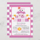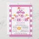Convite moderno para chás de fraldas de coruja, com uma coruja fofa colocada sobre um fundo de faixa roxa e branca, com sotaque de sol e flor sorridente e banners de pingente. Sacudir nosso chá de fraldas de garotas convidarem para ver um toque especial. Perfeito para um chá de menina do tema coruja.
