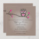 Uma coruja muito fofinha empoleirada num galho anunciando os detalhes da festa. Este convite pode funcionar para um chá de fraldas ou qualquer outro noivado como casamento ou aniversário. É também tão moderno e moderno.