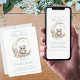 Celebre a chegada do seu pequeno com este convite de chá de fraldas encantador! Apresentando uma coruja bebê encantadora empobrecida em uma lua crescente e rodeada por flores delicadas, este convite expele uma sensação de capricho e ternura. Feito em um belo estilo aquarela com cores suaves e pastéis, ele captura a alegria e a antecipação de acolher um novo pequeno. Perfeito para definir um tom sereno e mágico para o seu chá de fraldas, este convite pode ser facilmente personalizado com os detalhes do evento. Compartilhe o entusiasmo com amigos e familiares através deste design encantador e animador.