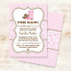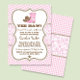 Design de convite para chá de fraldas de de vaquinha de pré-disquete, cor-de-rosa e castanho, em uma paisagem e fundo de gingham. Outros esquemas de cores e versões deste design estão disponíveis em nosso compro, bem como itens de coordenação. Entre em contato conosco se precisar deste design aplicado a um produto específico! Muito obrigado por ver um DoodleLulu em 2 inseto de junho!