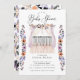 Celebre a chegada do seu pequeno com nosso belo convite para chás de fraldas, maravilhosamente projetado com flores delicadas e cortinas elegantes. Este convite encantador apresenta um berço preto na moda adornado com sotaques florais vibrantes, definindo o tom perfeito para sua ocasião alegre