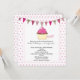 Este convite para o chá de fraldas de preciosos é uma maneira maravilhosa de convidar seus convidados a se juntar a vocês para comemorar sua nova chegada. Este design tem um fundo branco brilhante com bolinhas cor-de-rosa. No topo, há um banner de estilo de tinta rosa e branca. No centro, há um cupcake divertido com um gelo rosa brilhante e um doce cor-de-menta rosa divertido. Na frente está um doce ditado, "Amor, Joy, e sonhos maravilhosos, todas as coisas doces que um novo bebê traz..." Abaixo está um lugar para todos os detalhes do seu chá.