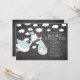 Cegonha azul adorável sobre um fundo de quadro negro com nuvens.