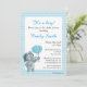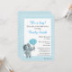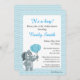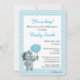 Impressão para um chuveiro de bebê para uma festa de menino com ilustração de pequenos elefantes bonitinhos segurando balões azuis; no padrão de chevron zigzag sem soldadura