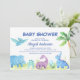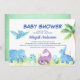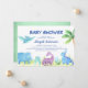 Brachiosaurus, Stegosaurus, Pterodactyls, Dinossauros que têm uma aquarela tropical verde-azulada Chamas Bebê-Chuveiro verdes e azuis em fundo verde - inclui uma bela e moderna tipografia de roteiro com palmeiras tropicais divertidas e verde para a festa especial Mãe a Ser.