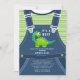 Convite ao Chá de fraldas Dinossauro com o par mais bonito de macacões para bebês com um dinossauro azul e verde. O chá de fraldas de Meninos Único convida para um chá de fraldas de tema de dinossauro para um menino.