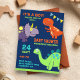 Surpreenda seus convidados com este convite para chás de fraldas legal com dinossauros coloridos brilhantes com tipografia vibrante contra um fundo azul. Basta adicionar os detalhes do seu evento neste modelo fácil de usar para torná-lo um convite de tipo único. Sacudir a placa para revelar um padrão laranja elegante na parte traseira da placa.