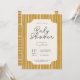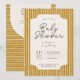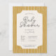 Chá de fraldas boho minimalista convida um fundo de faixa vertical. Colocado em tons de amarelo-mostarda, bege e azul escuro. Personalize o texto e a fonte, a escala do padrão e a cor da forma que fica sob o texto. Opção de excelente para convites para chuveiros de bebês, convites para chuveiros de bebês neutros em termos de gênero e convites para chuveiros de bebês de boho.