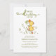Um belo convite de chá de fraldas com "Um pequeno patinho doce está a caminho" em delicada tipografia verde-moderna e na moda, além de um doce desenho de um patinho. Personalize o nome da futura mãe e os detalhes do chá em uma delicada tipografia verde.