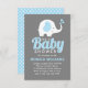 Convite para Chá de fraldas de Elefante Cinza Azul