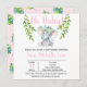 Convite para Chá de fraldas Elefante de Aquarela de Menina Este convite para chá de fraldas de elefante de cor d'água da Rapariga apresenta um elefante giro com uma folhagem verde sobre fundo branco. Ideal de um chá de fraldas teórico de elefante de uma garota.