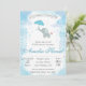 Convite para Chá de fraldas Elefante de Aquarela de Menino Este convite para chá de fraldas de elefante de aquarela de menino apresenta um elefante giro, um balão azul de bebê e alguma folhagem verde em um fundo branco. Ideal do chá de fraldas do elefante de um próximo menino.