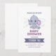 Convite para Chá de fraldas Elefante de Chá de fraldas de Aquarela Elefante de Menino Convite para de Elefante de Menino Este convite para chá de fraldas de elefante de aquarela de menino apresenta um elefante giro, um balão azul de bebê e alguma folhagem verde em um fundo branco. Ideal do chá de fraldas do elefante de um próximo menino.