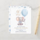 Você está procurando um tema de chá de fraldas bonito para uma mamãe a ser de um menino? Confira este Convite para Chá de fraldas de Elefante para Balões de Orçamento. Apresenta um elefante de aquarela fofo com um balão azul. Na parte de trás, você encontra um padrão pontilhado de aquarela fofo. Você pode adicionar seus próprios detalhes muito facilmente usando os campos modelo. Temos uma coleção inteira de itens e suprimentos de festas com este tema elefante Cute com diferentes opções para convites. Você pode visualizá-los abaixo do produto (Clique no link abaixo do cabeçalho "Outros produtos nesta coleção"). Feliz personalização e festa de excelente!