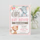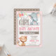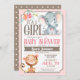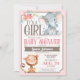 Um convite para chá de fraldas de elefante e macaco, cor-de-rosa e castanho. Excelente convidado para chás de fraldas temáticos da selva, safari, animais de zoo.