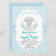 Use este elegante Convite para Chá de fraldas de Elefante para Bebê para enviar a todos os seus amigos e familiares para que eles saibam as informações sobre seu evento especial que está por vir. Apresentando elefante para bebês, flores e fundo chevron azul para bebês. Por favor, veja nossa placa RSVP, Cartões de agradecimentos e Fralda Raffle Ticket.