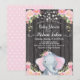 Doce Menina Chamada De Bebê. Elefante com banda de ouvido floral em um fundo de pokda rosa. Esses convites para o chá de bebê de elefante são facilmente personalizados para o seu evento, simplesmente adicionando seus detalhes e excelente para o seu chá de fraldas ou bebê borrifar!