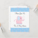 Um design bonito com bordas azuis com estrelas brancas. O pequeno elefante rosa mais bonito soprando pequenos corações do seu tronco. Acentos azuis. Personalize com as informações do chá de fraldas conforme desejado.