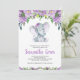 Aprecie seus convidados com este Convite para Chá de fraldas de Elefante Roxo para o próximo chá de fraldas que você está preparando.