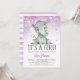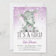 É uma garota! Convite para chá de fraldas de elefante roxo/lavanda. Fundo de aquarela e striped para trás.
