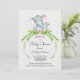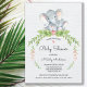 Chá de fraldas de safari da selva de aquarela linda com uma adorável mãe elefante e bebê com folhas da selva e flores cor-de-rosa colocadas sobre um fundo de burlap branco. Perfeito para um chá de fraldas de meninas, chá de fraldas de meninos ou chá de fraldas neutro em gênero.