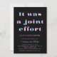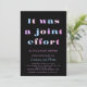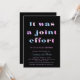 Um convite perfeito para o casal esperado! Este convite apresenta "Foi um esforço conjunto" em um roteiro ousado de várias cores em um plano de fundo preto com suas informações de chá abaixo e no verso é preto sólido, mas pode ser personalizado de acordo com suas necessidades.