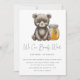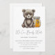 Podemos esperar chá de fraldas convite. Um pequeno ursinho de desenho bonito e um pote com mel - convite para chás de fraldas. Itens correspondentes disponíveis.