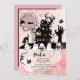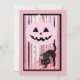 Prepare-se para um chá de fraldas bonito! Este convite "Peek a Boo" apresenta uma encantadora casa assombrada e uma linhagem doce de fantasmas e um gato negro. A paleta cor-de-rosa e preta está em constante evolução e é perfeita para celebrar um novo pequeno ghoul ou goblin. O dorso apresenta o mesmo gato e uma abóbora colocados sobre um belo fundo cor-de-água rosa com linhas ornamentais.