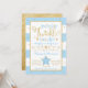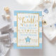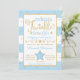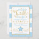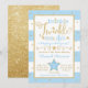 Convite para chá de fraldas de estrelas azul e dourado cintilante brilhante.