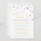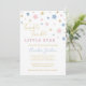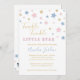 Este convite neutro em termos de gênero é perfeito para um chá de fraldas. Este design de Pequena Estrela Brilhante apresenta estrelas cor-de-água rosa e azuis, brilho dourado e tipo divertido.