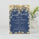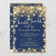 Bonito convite do chá de fraldas Twinkle Little Star com estrelas de ouro modernas, colocado sobre um fundo azul com tipografia de tendência. Sacudir que o chá de fraldas dos nossos rapazes convide para ver uma coordenação de volta para um toque especial extra.
