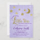 Convite para chá de fraldas de pequenas estrelas de brilho roxo e dourado