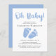 Um convite para o chá de um bebê bonitinho e econômico com "Oh Baby!" em um roteiro azul pastel e uma coordenação da aquarela dos pés de bebês. Você pode personalizar facilmente os detalhes do chá.