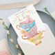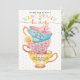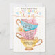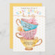 Bela vintage, estilo chic vintage, chá, festa tematizada design de convite para chá de fraldas com três equipes empilhadas. As equipes de estilo vintage são coloridas em azul claro pálido com bolinhas, listras cor-de-rosa pálidas pálidas e amarelo pálido macio. O Faux Copper aceita que são incorporados às alças do teacup, ao redor da jante e sotaques de padrão para criar um visual clássico de safra. Uma bela flor rosa escamoteada e uma flor amarela pálida estão aninhadas nas torneiras para um toque feminino. Os detalhes do chá de fraldas e o ajustado de informações em cada equipe para uma aparência exclusiva. Todas as ilustrações contidas neste convite para chás de fraldas da festa do chá são obras de arte originais desenhadas à mão pela Moodthology. Você pode personalizar o tamanho do texto, a cor do texto, a fonte e o layout para sua preferência de design pessoal.