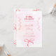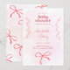 Convide os convidados em estilo com este convite de chá de fraldas inspirado em coquetes, com matizes cor-de-rosa suave, detalhes delicados de fita e um fundo de aquarela elegante. A design feminina e encantadora expele sofisticação enquanto mantém um toque lúdico, perfeito para celebrar a futura mãe. Uma escolha de eterno e na moda para um evento de chá de fraldas memorável.