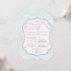 Fundo impressão azul de floco de neve gelado com trim brilhante prateado e banda poka-dot rosa e branca com revestimento de aparas de rendas. Bandeja de bundas de patchwork e flocos de neve prateados Flocos de inverno chá de fraldas de convite para design.