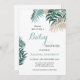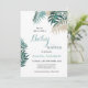 Impressão com folhas tropicais estilizadas verdes e beges. A design é criada por uma agradável e inesquecível impressão do seu dia especial.