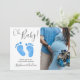 Oh, Chá de fraldas Azul Bebê Convite para Fotografias Enviar estes convites simples e na moda para duches de bebês para familiares e amigos. Eles são decorados com tipografia moderna e pés de bebê pintados a aquarela bonitinhos pintados à mão em azul pastel. Adicione sua própria foto, nome e detalhes. Porque nós criamos nosso próprio trabalho de arte você não encontrará essa imagem exata de outros designers. Original Watercolor © Michele Davies.