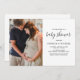 Convites elegantes para bebês-chic com um fundo branco comum, uma foto da sua mãe e pai e um modelo moderno de chá de fraldas de tipografia que é fácil de personalizar.