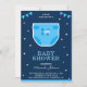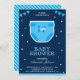 Incêndio aos seus convidados com este chá de fraldas fofo, convidando com uma adorável fralda com elementos vibrantes contra um fundo azul marinho. Basta adicionar os detalhes do seu evento neste modelo fácil de usar para torná-lo um convite de tipo único. Sacudir a placa para revelar um padrão elegante de listras azuis e brancas na parte traseira da placa.