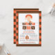 Convite moderno de chá de fraldas de futebol, com um bebê fofo a vestir uma fralda e capacete com um jogo de futebol num fundo de banda laranja e castanha, com sotaque de futebol e faixas de pendant. Sacudir, o chá de fraldas dos nossos rapazes desportivos convida-os a ver um encontro de volta para um toque especial. Perfeito para um chá de bebê.